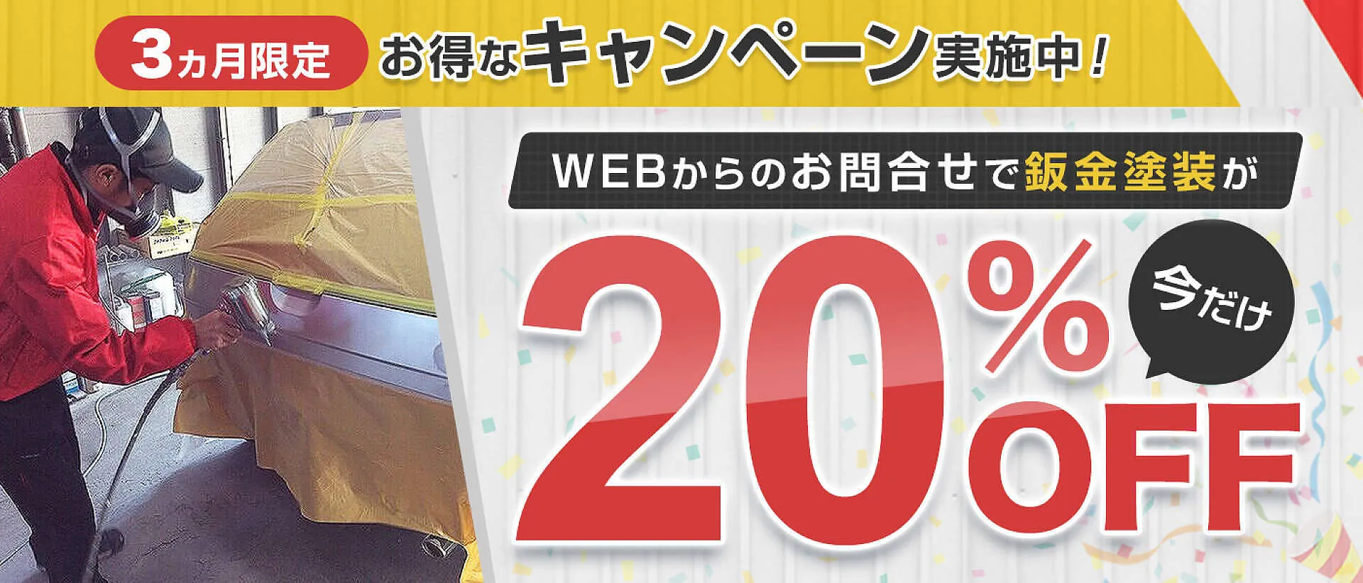 3ヵ月限定キャンペーンになりますので、ぜひこのお得な機会に鈑金塗装(キズ・ヘコミ修理)をご依頼ください。